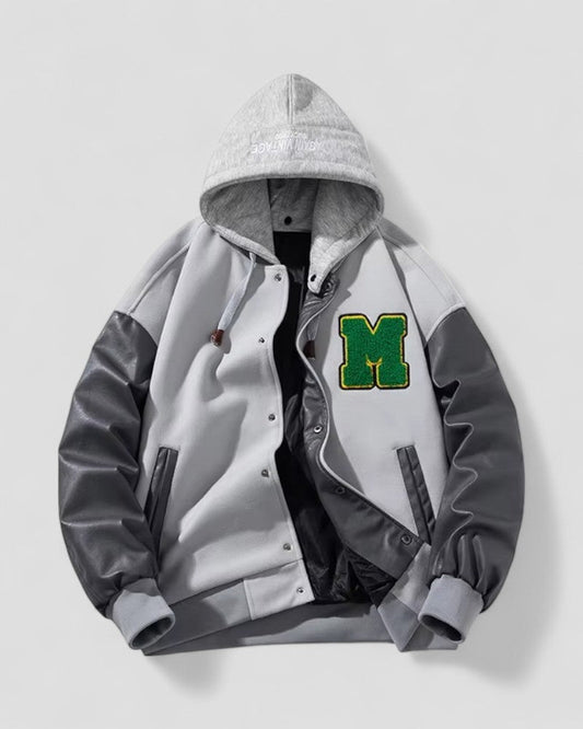 Fleece Lined Varsity Jacket with Faux Leather Sleeves