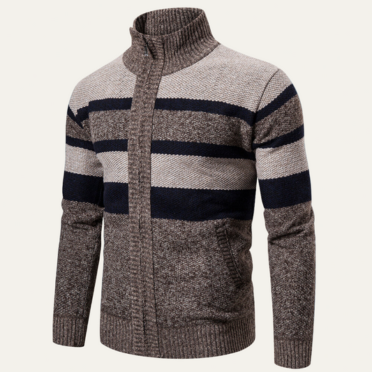 VogeLuxe | Men’s Zip-Up Knit Jacket with Striped Pattern