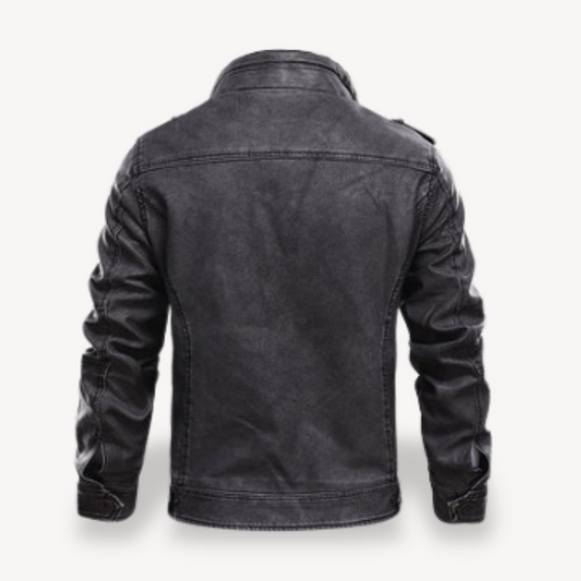 VogeLuxe | Men’s Distressed Faux Leather Biker Jacket