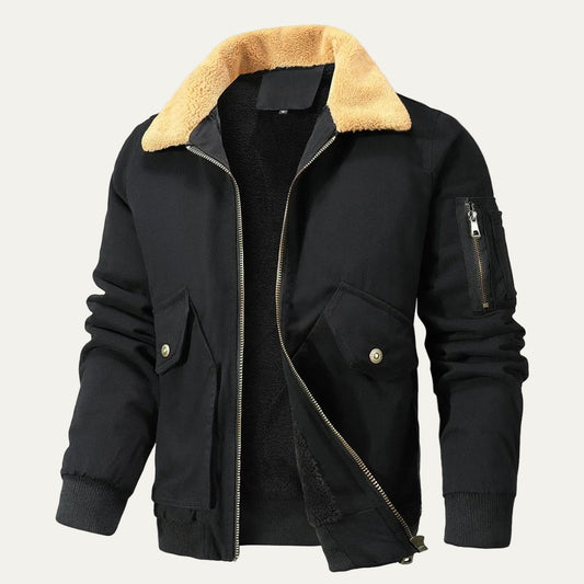VogeLuxe | Men’s Bomber Jacket with Faux Fur Collar and Utility Pockets