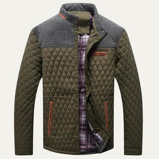 VogeLuxe | Men’s Quilted Bomber Style Jacket with Stand Collar and Snap Closure