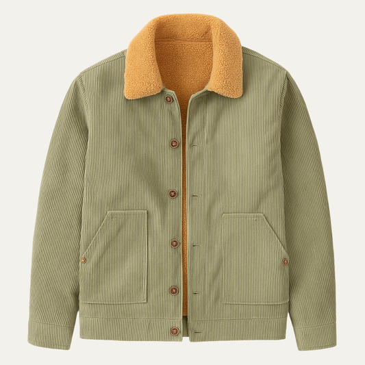 VogeLuxe | Men’s Corduroy Shacket with Faux-Shearling Collar