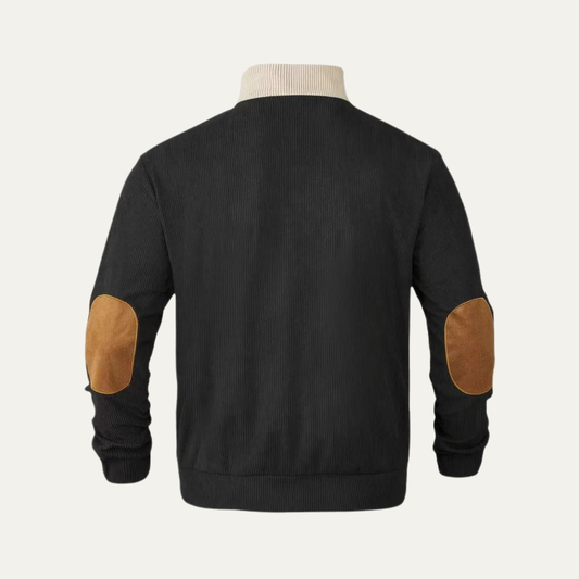 VogeLuxe | Men’s Corduroy Pullover Sweater with Buttoned Leather Placket