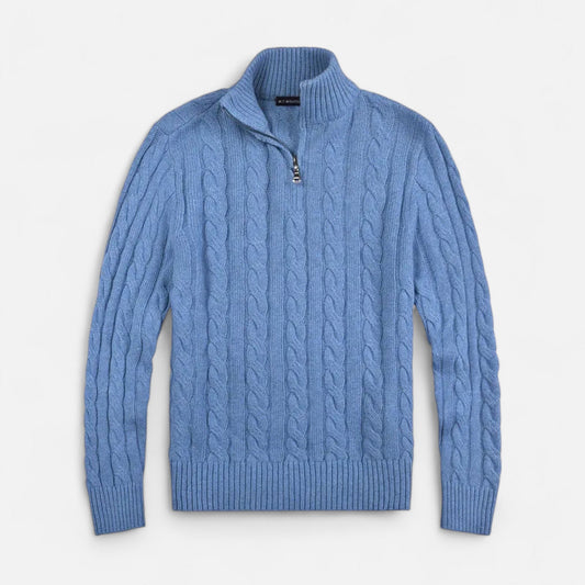 VogeLuxe | Men’s Cable Knit Quarter Zip Mock Neck Sweater