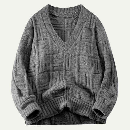 VogeLuxe | Men’s Chunky Knit V Neck Textured Sweater