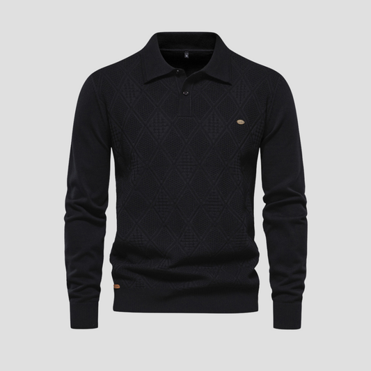VogeLuxe | Men’s Textured Diamond Polo Sweater