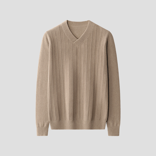VogeLuxe | Men’s Classic V-Neck Ribbed Sweater