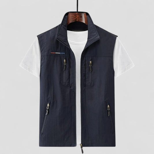 Men’s Casual Sleeveless Vest with Multiple Zipper Pockets