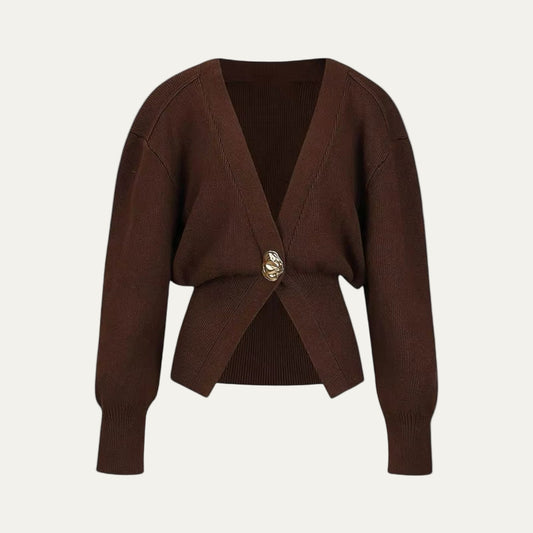 VogeLuxe | Women’s Elegant Heart-Button V-Neck Cardigan