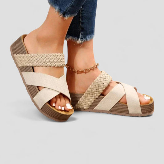 • Orthopedic Leather Cross Strap Sandals for Women
