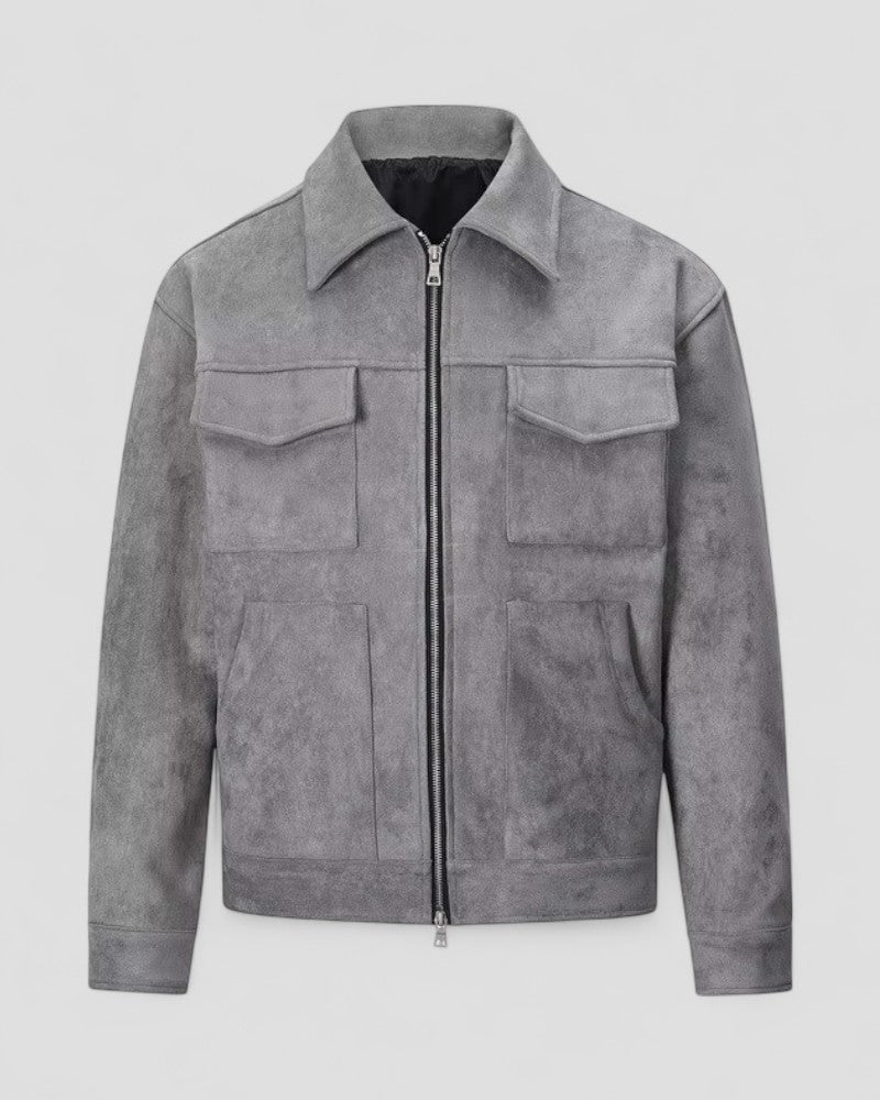 Men's Suede Zip Up Pocket Detail Casual Jacket