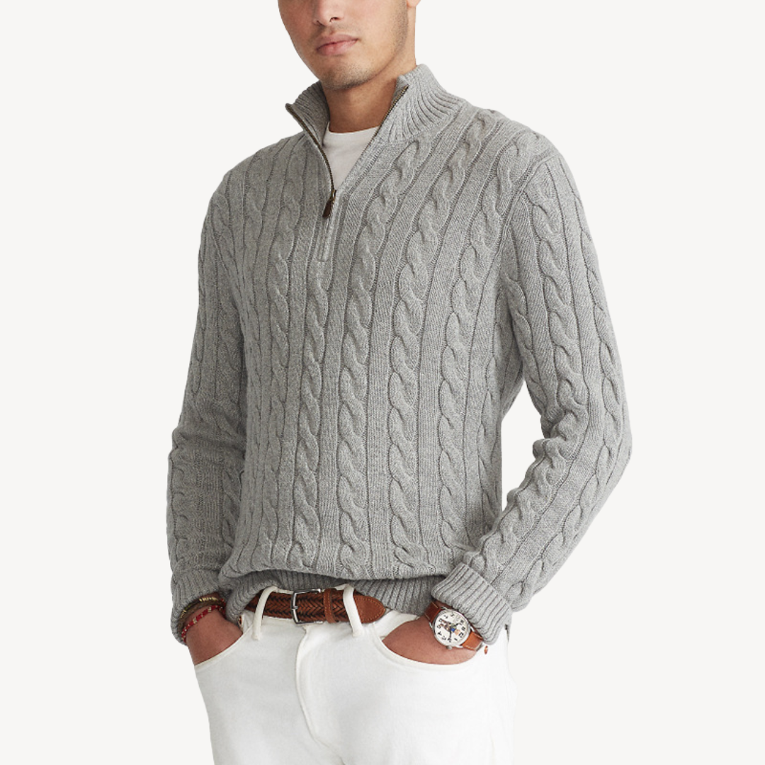 VogeLuxe | Men’s Cable-Knit Quarter-Zip Sweater