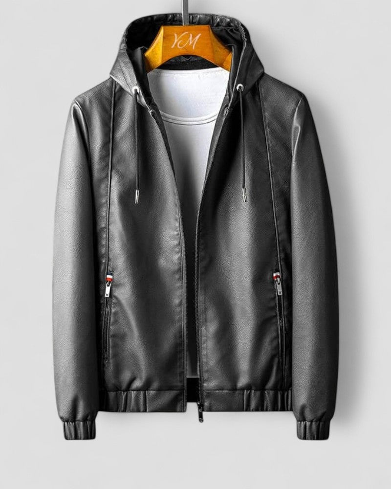 VogeLuxe | Men’s Casual Faux Leather Hoodie