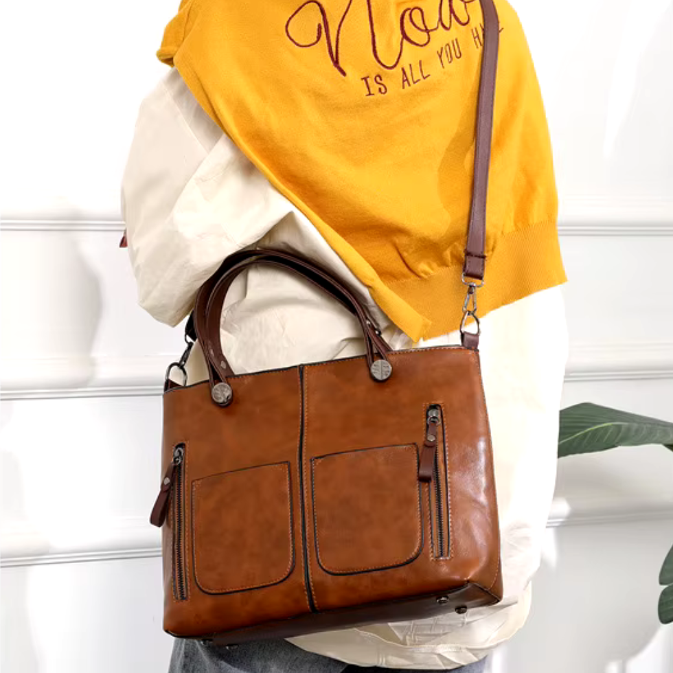 Women’s Leather Handbag Multi-Pocket Shoulder Bag Vintage Style